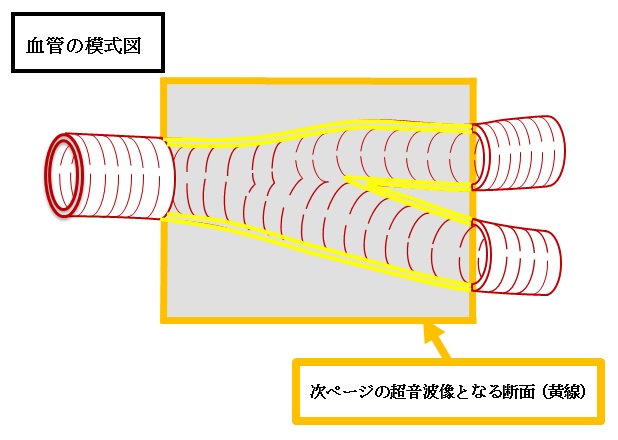 この画像はもっとも病変が生じやすいといわれる「分岐部」で、血管が枝分かれしている部分です。
