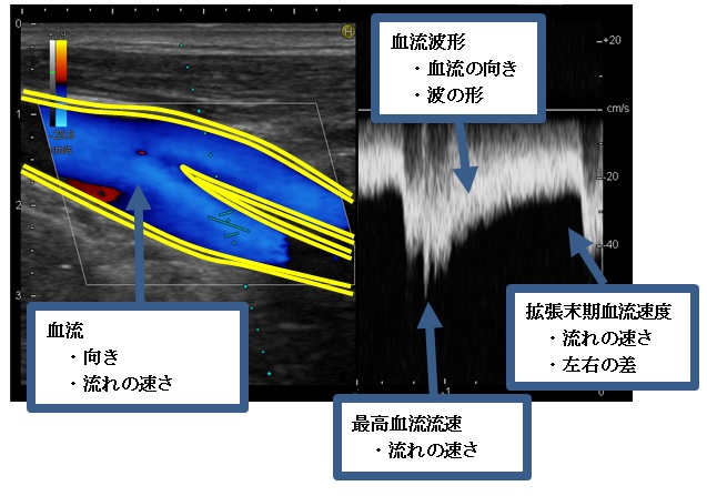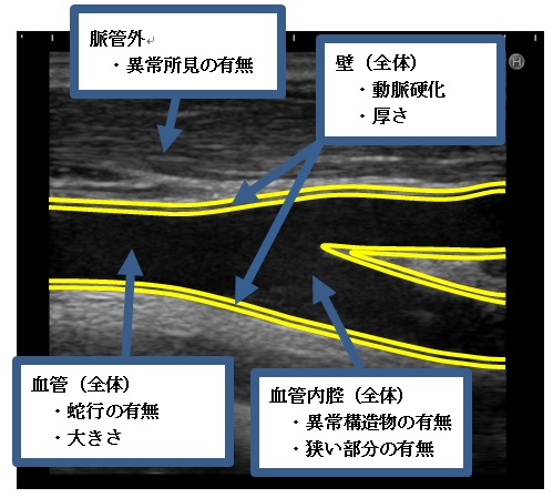 その他に手足の動脈や静脈、腎臓の動脈も観察します。