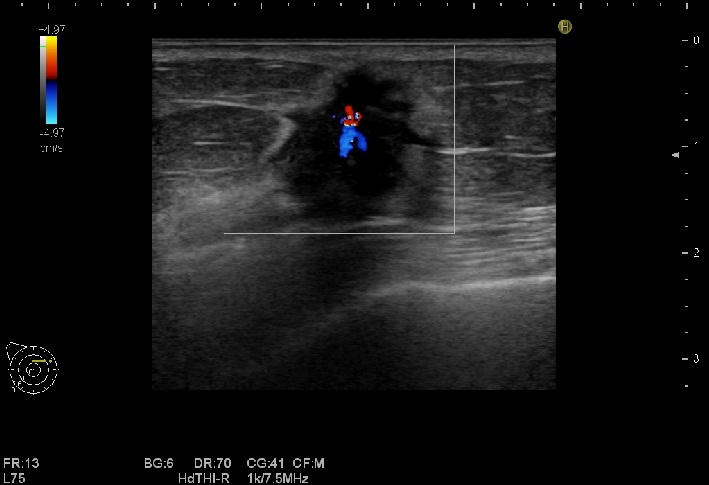 内部に腫瘤があれば、超音波上での良悪性の鑑別をします。