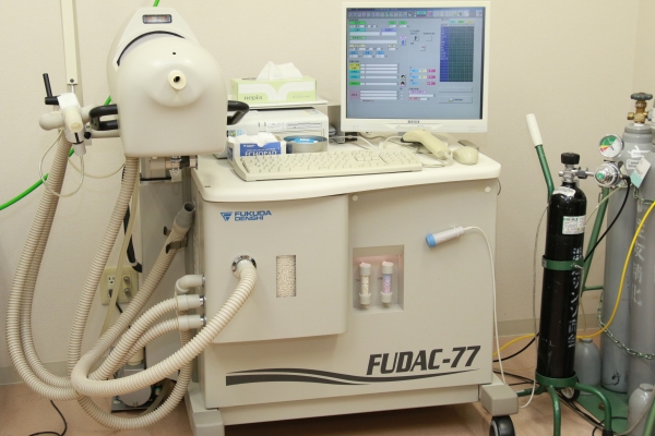 慢性閉塞性肺疾患(COPD)、肺線維症などの呼吸器疾患や手術前検査として、肺活量をスパイロメーターで測定します。