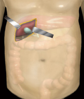 当院での腹腔鏡手術の対象は、悪性疾患では胃癌、大腸癌、良性疾患ではヘルニア、胆嚢、虫垂が挙げられます。難易度の高い食道、肝臓、膵臓の手術は開腹手術で行っています。また、高度進行癌や腹部手術歴のある方は腹腔鏡手術の対象にならないことがあります。‘単孔式’腹腔鏡手術