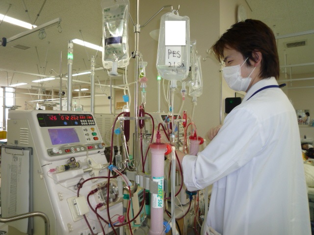 体内に貯まった老廃物などを排泄あるいは代謝する機能が働かなくなった場合に行う治療で、血液透析療法、血漿交換療法、血液吸着法など様々な血液浄化療法が存在します。臨床工学技士は、血液浄化中の血液の状態、機器の動作状況などチェックし、安全な血液浄化をサポートします。