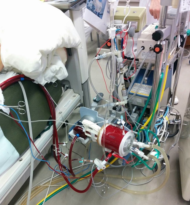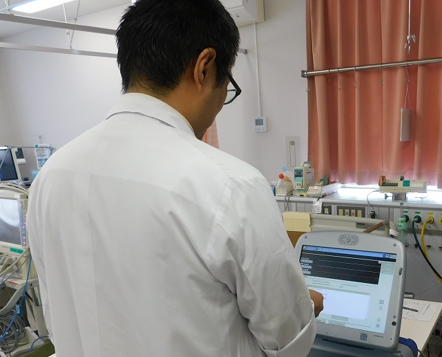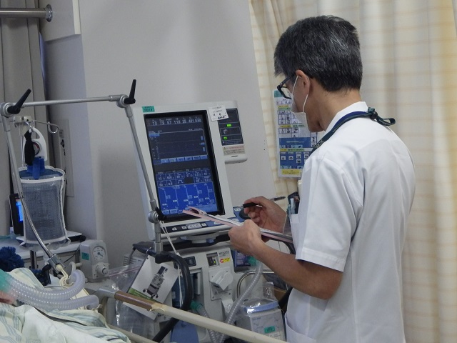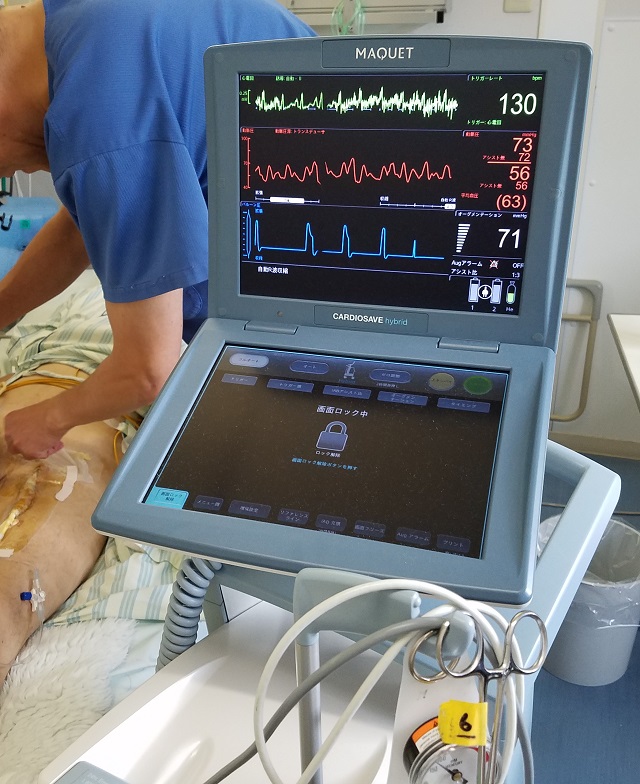 (写真下)HCUにてベットサイドでPCPSを管理している様子です。