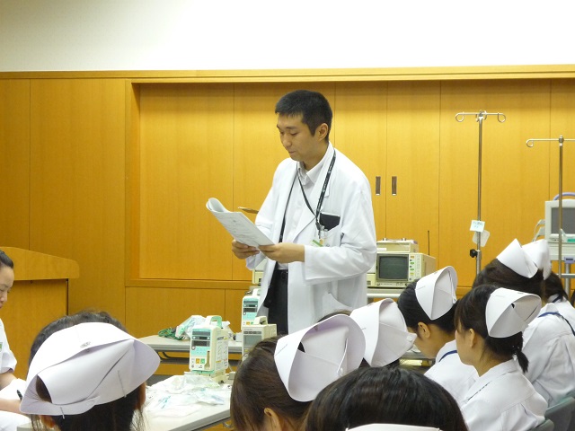 (写真左)新人看護師に対しての医療機器勉強会を毎年行っています。