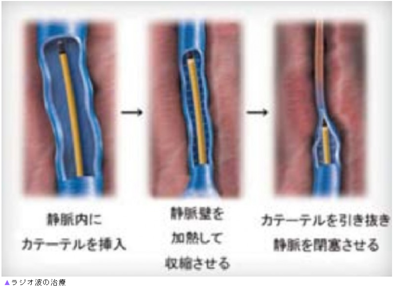 2014年には上記のレーザーより低侵襲に血管内治療が行える高周波(ラジオ波)、レーザー(波長1470nm)が保険適用となりました。