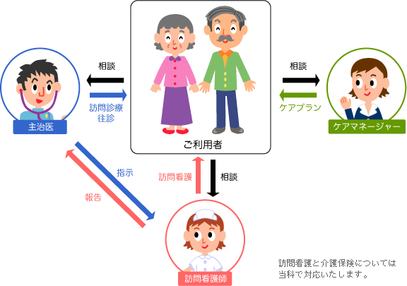 - 訪問看護は医師の支持のもとに行いますので、まず主治医にご相談ください。