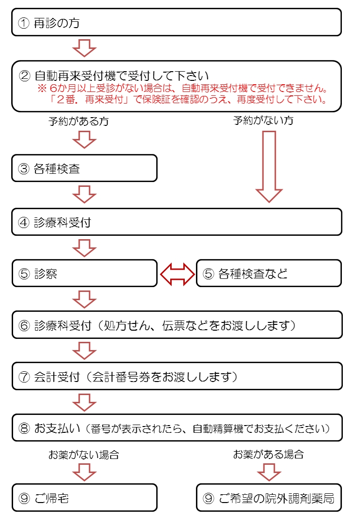 ※ 複数の診療科を受診予定のある方は、来院時に自動再来受付機ですべての受付を済ませて下さい。
